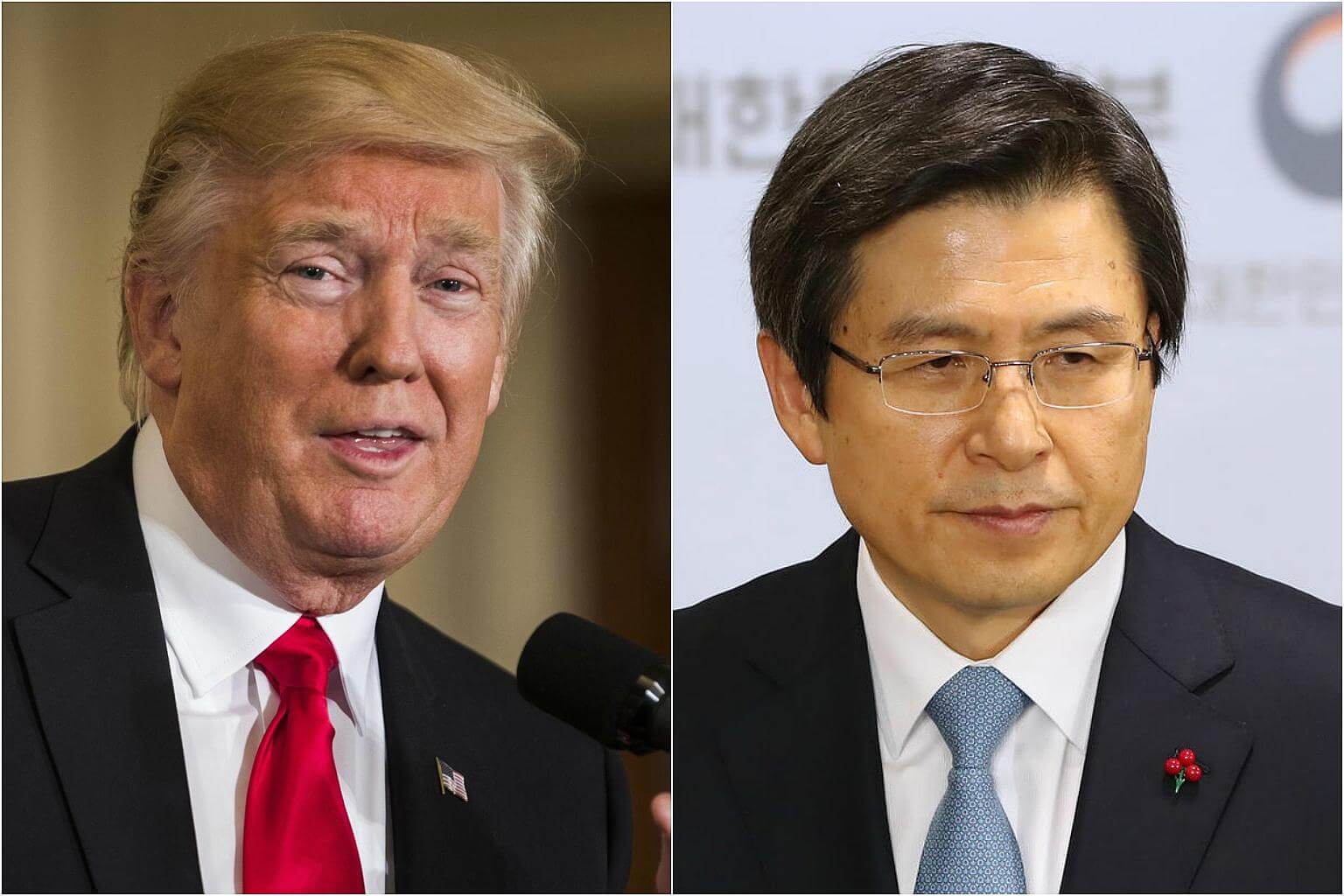 US President Donald Trump (left) and South Korean Acting President Hwang Kyo Ahn agreed to take steps to strengthen joint defence capabilities to defend against threats from North Korea.