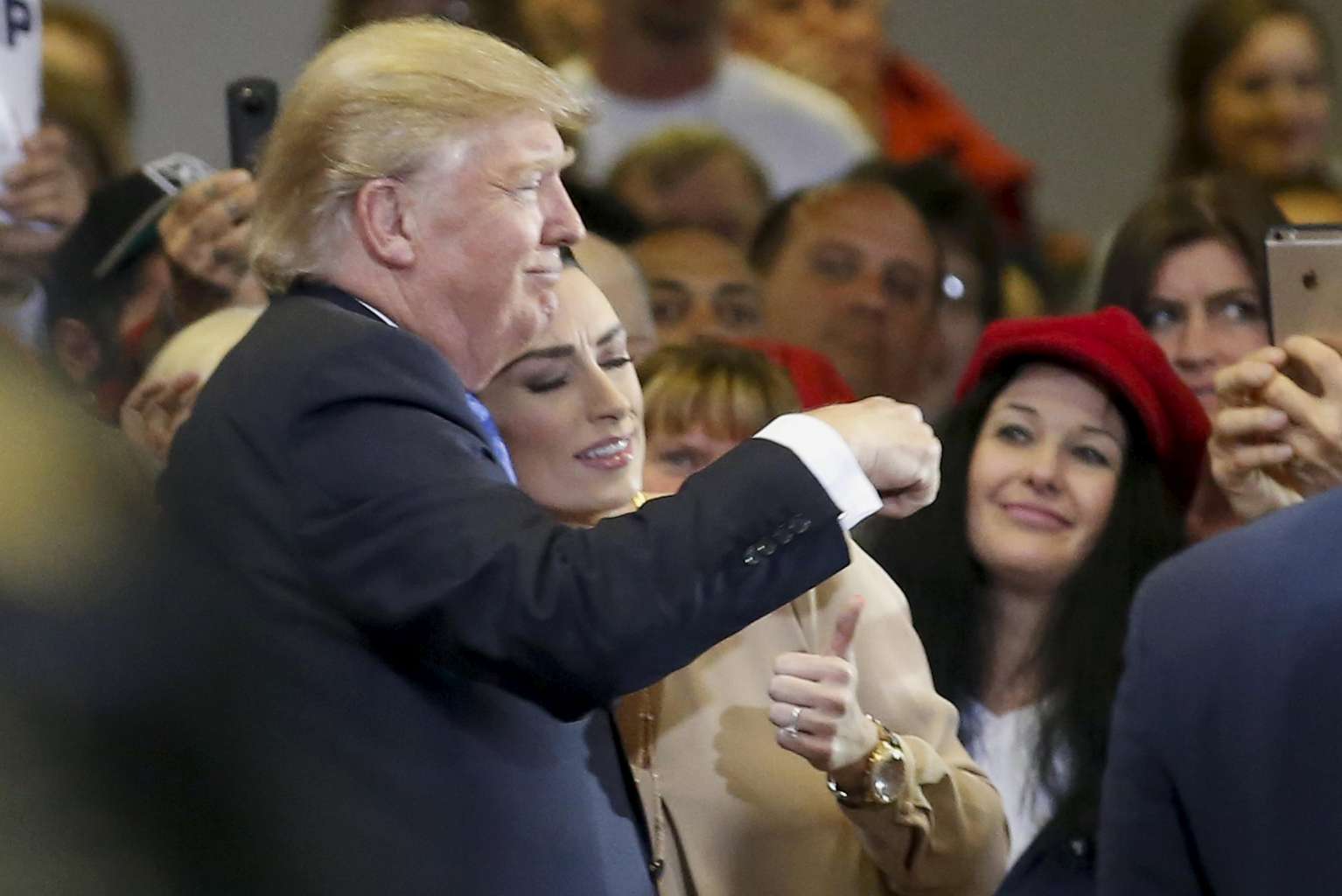 Republican presidential candidate Donald Trump with Miss Wisconsin USA 2005 Melissa Young during a Town Hall in Janesville, on March 29, 2016.