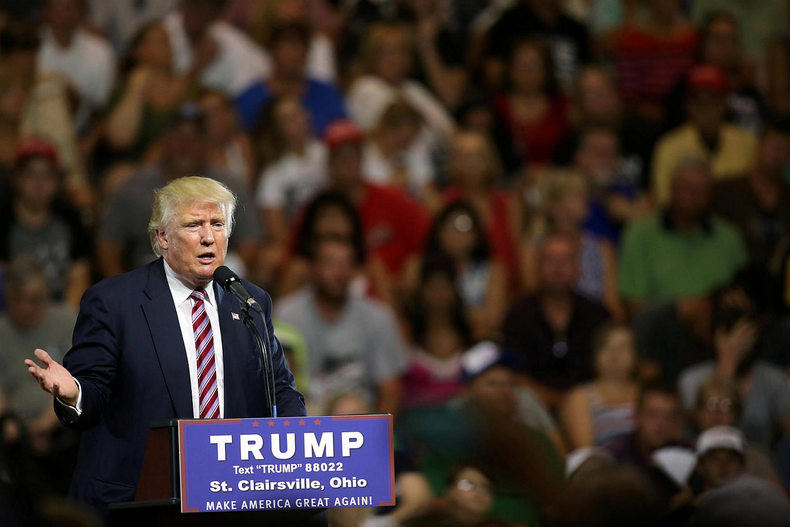 Republican US presidential candidate Donald Trump speaks at a campaign rally in St. Clairsville, Ohio.