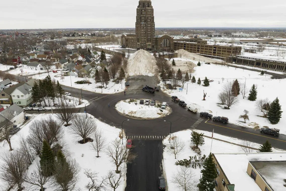 A gigantic snow pile is seen in front of Central Terminal in Buffalo, New York, on Dec 29, 2022.