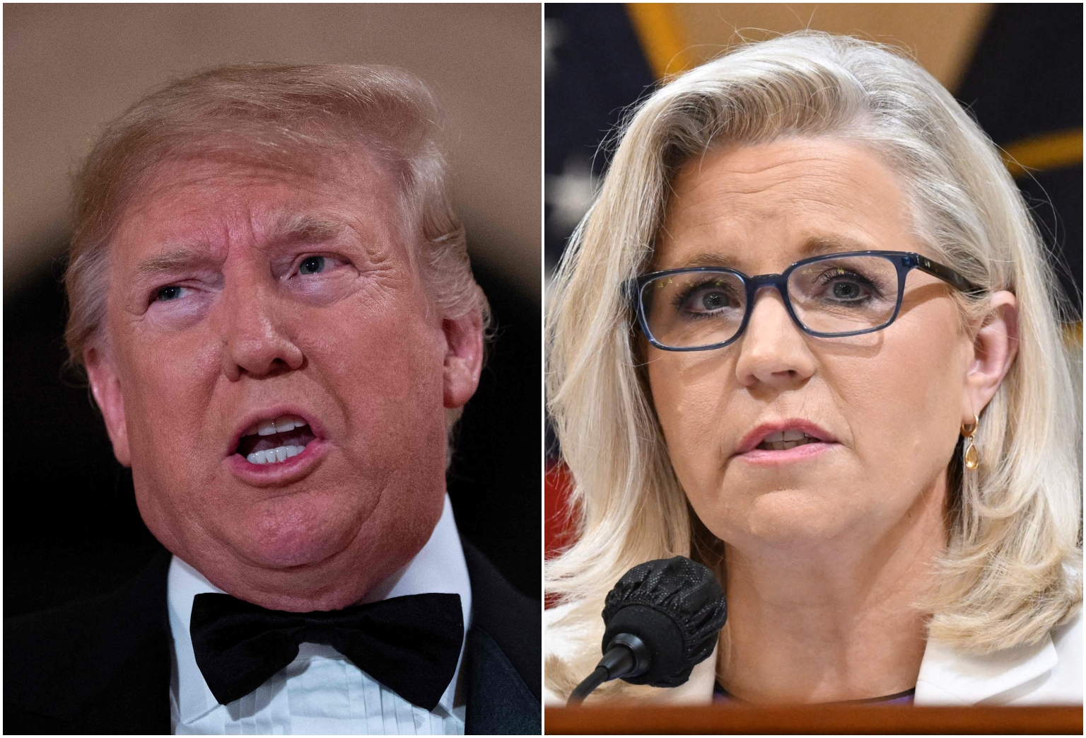 Once considered Republican royalty, Liz Cheney (right) has become a pariah in the party over her opposition to Trump (left).