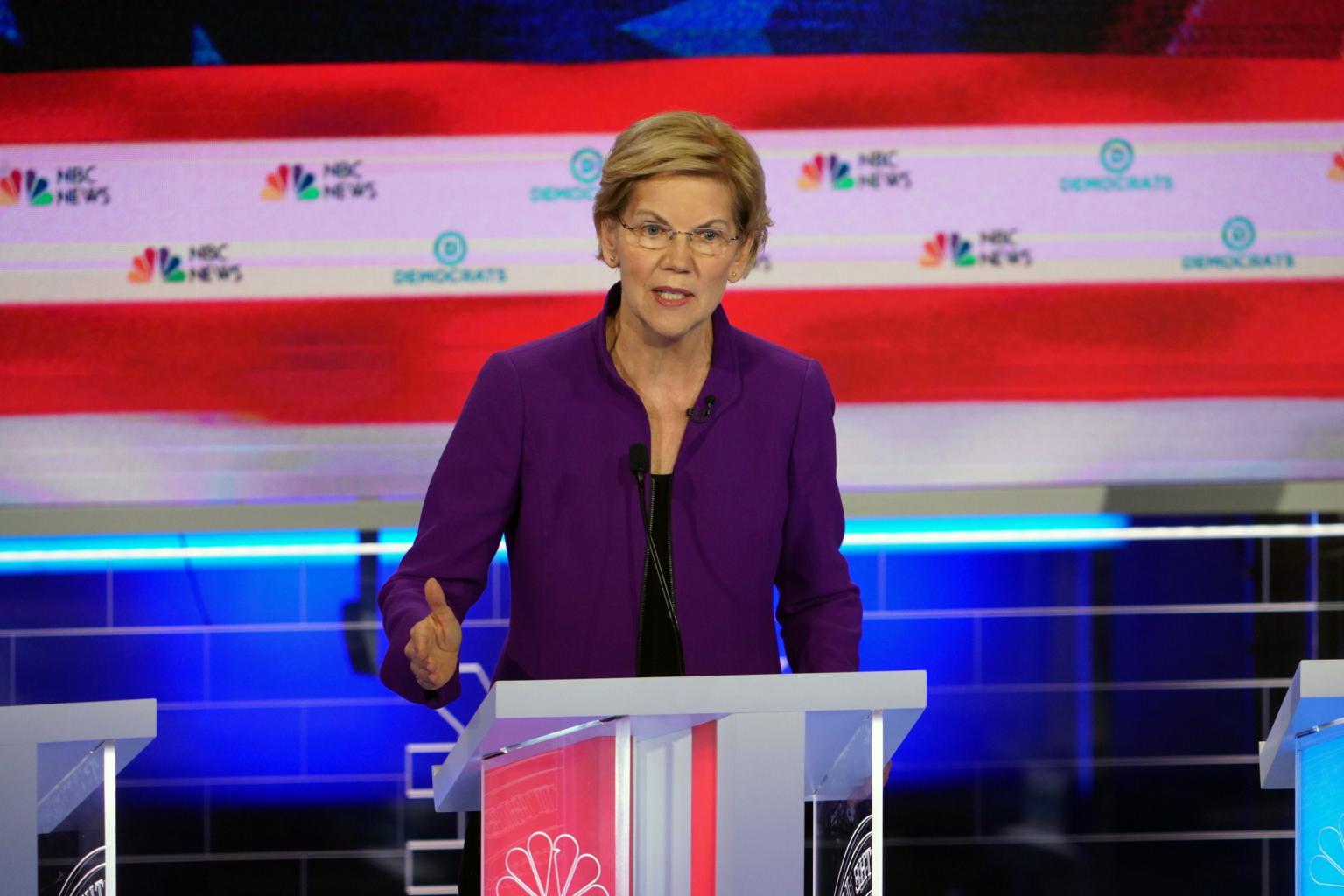 What they heard right off the bat was Ms Warren, the ideological progressive and only candidate on stage polling in double digits, knocking what she calls a rigged economy.