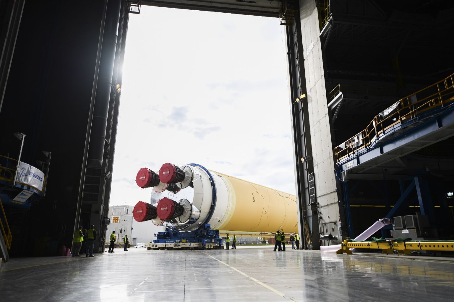 A Nasa handout photo shows the core stage of Nasa’s Artemis rocket, which would take astronauts to the moon, in January 2020.