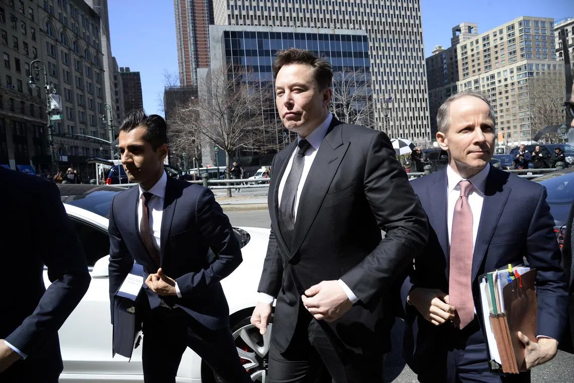 A 2019 photo shows Elon Musk arriving at federal court in New York for a hearing.