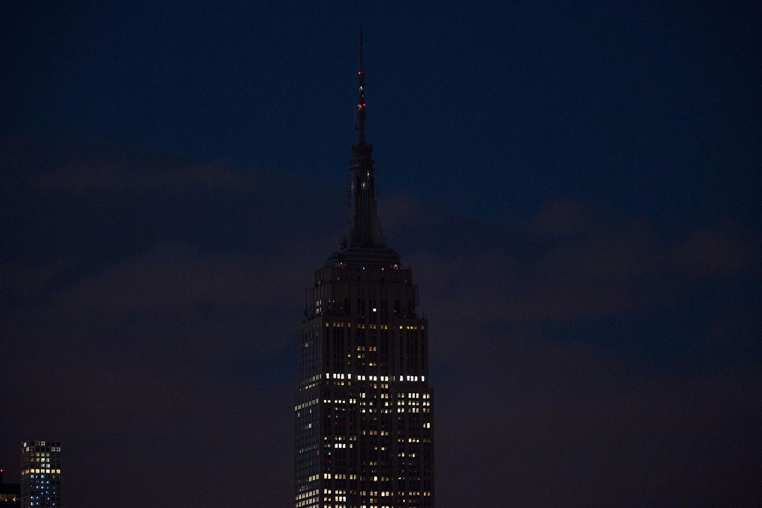 NEW YORK (AFP) - New York City's Empire State Building went dark late on Sunday (June 12) while the spire of One World Trade Center lit up in the colors of the gay pride flag in memory of the victims of the Orlando massacre.