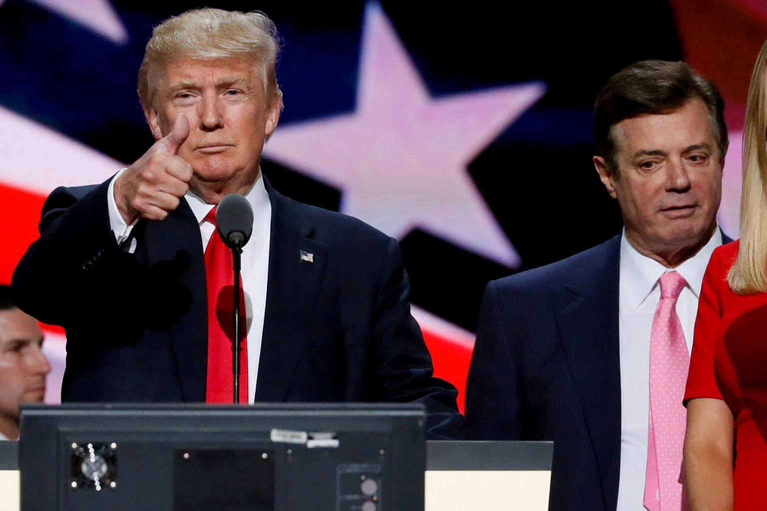 US President Donald Trump with his former campaign manager Paul Manafort during the Republican National Convention in Cleveland, on July 21, 2016.