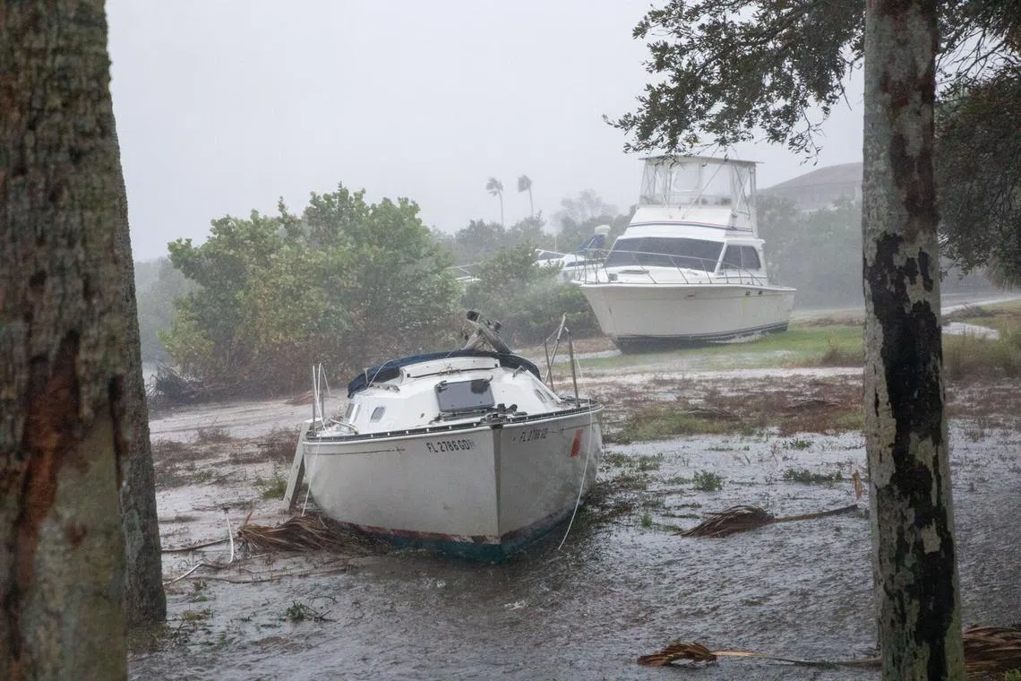 Beached boats during Hurricane Milton in St Petersburg, Florida, on Oct 9. At sea, the hurricane created waves close to 8.5m high, said the authorities.
