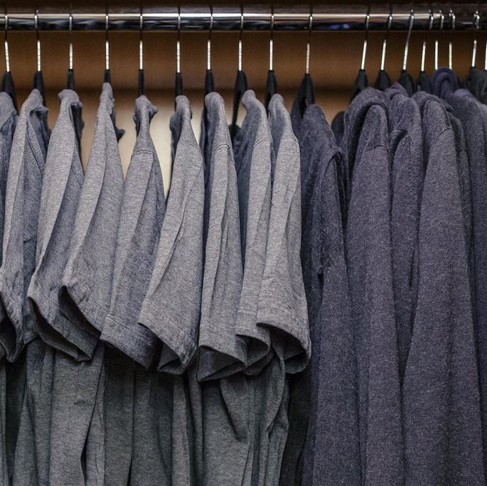 The accompanying photo on Facebook revealed a row of identical grey T-shirts - his go-to outfit and something of a trademark Zuckerberg look - and navy blue sweaters in his closet.