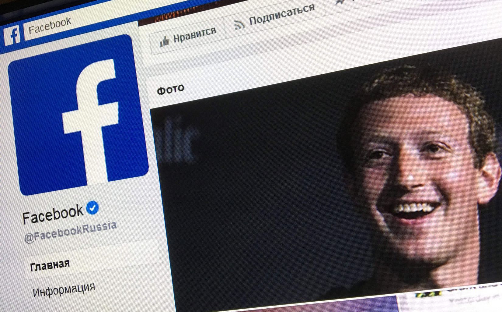 An illustration picture of the Russian language version of Facebook, featuring Zuckerberg.