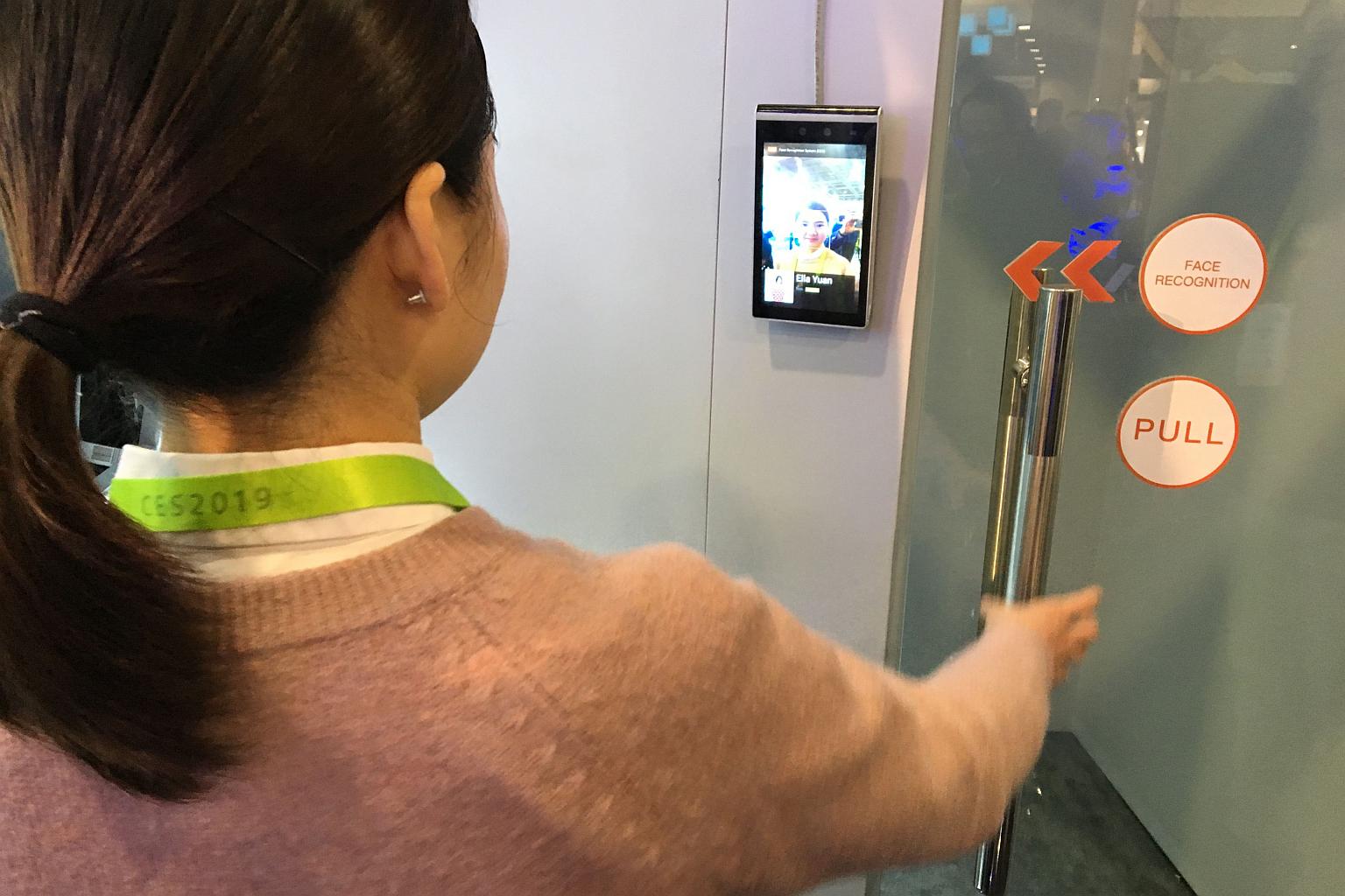 Ms Ella Yuan of Chinese start-up Tuya shows how facial recognition can be used in a home security system to allow or deny entry, at the Consumer Electronics Show.