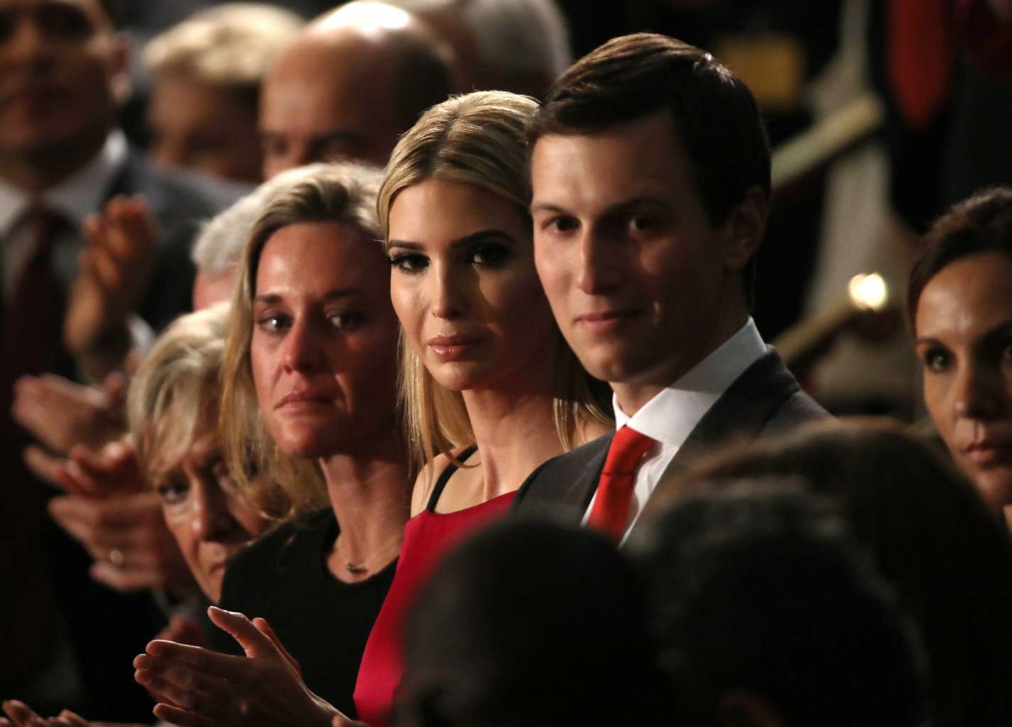 Jared Kushner (right) and his wife Ivanka Trump (centre) and others applaud President Donald Trump during his speech to the US Congress on Feb 28, 2017.