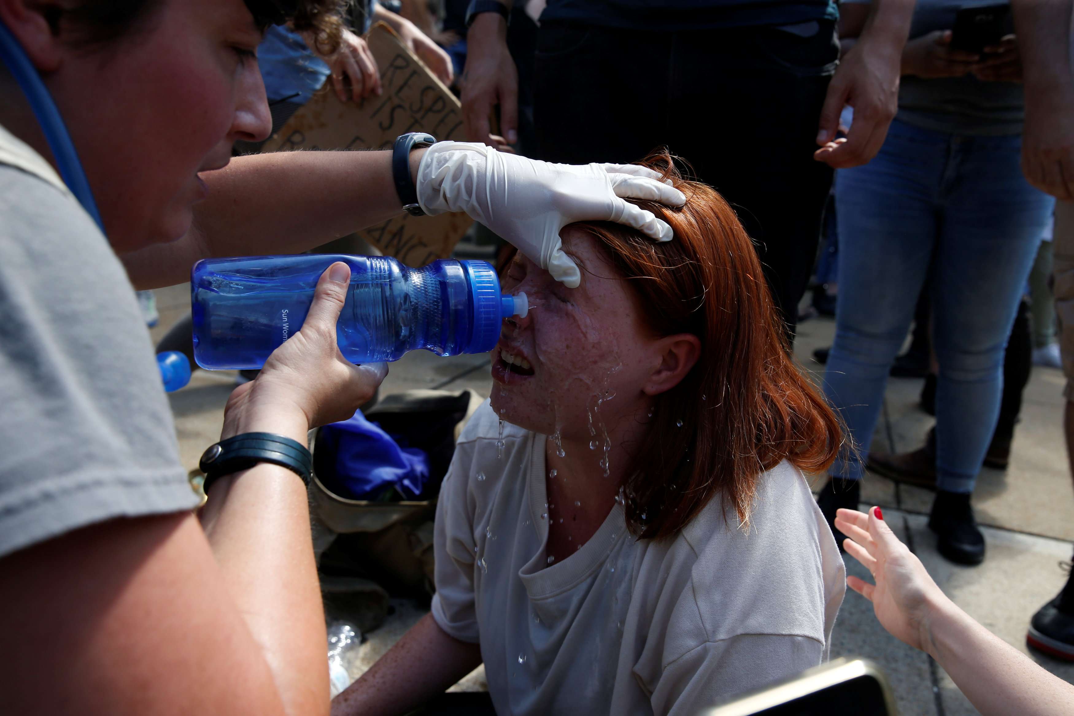 A protester receives first-aid during a clash between members of white nationalists against a group of counter-protesters in Charlottesville, Virginia, US, Aug 12, 2017.