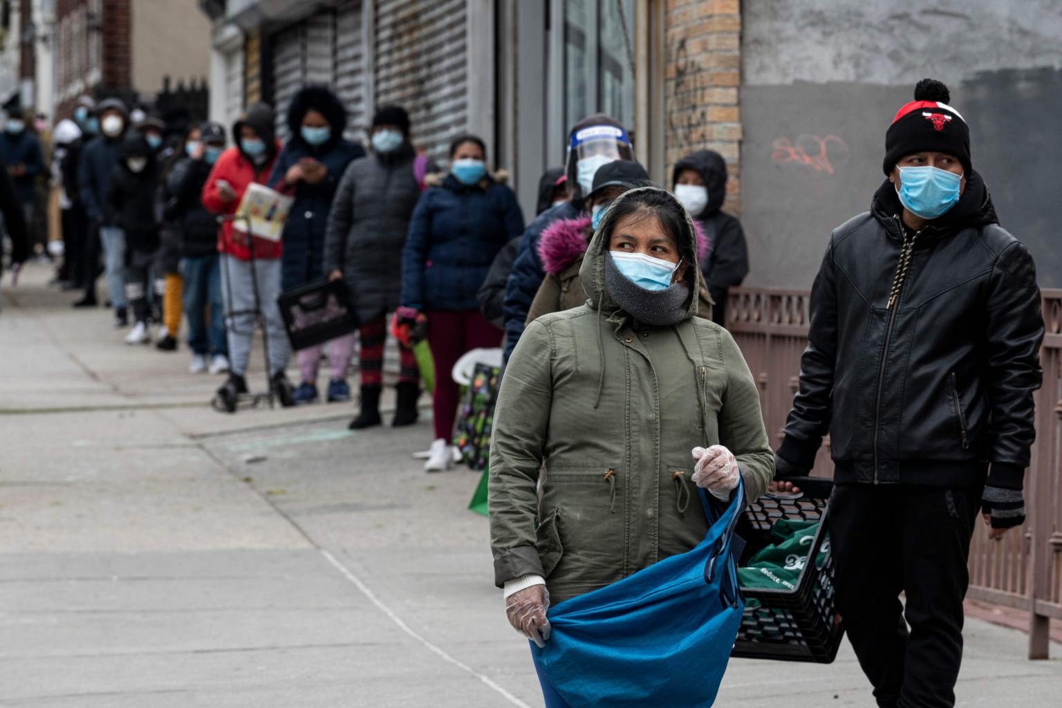 People in need line up at a food distribution centre in New York, on April 29, 2020.