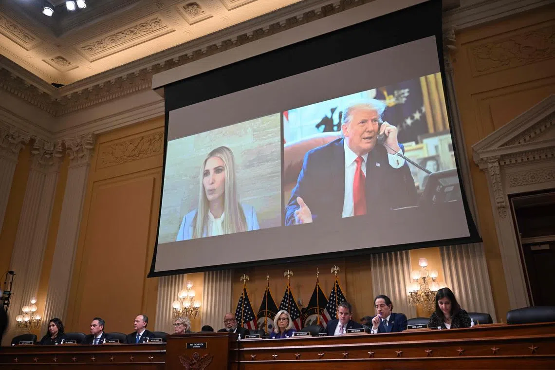 A video of Mr President Donald Trump is shown on a screen as the House committee holds its last public meeting on Dec 19.