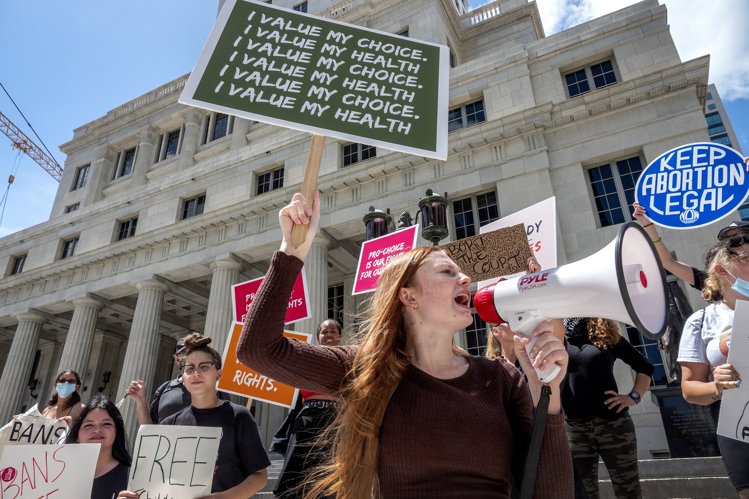 Women protest for abortion rights at the Miami-Dade County Courthouse, in Miami, Florida.