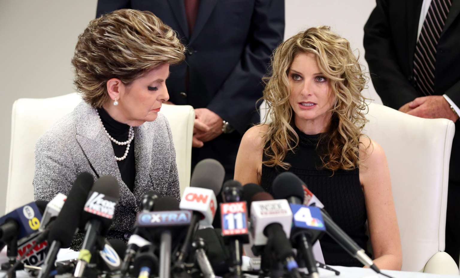 Summer Zervos (right) reads a statement as her attorney Gloria Allred looks on during a press conference with her attorney where she announced she has filed a defamation lawsuit against US President-elect Trump, in Los Angeles, California on Jan 17, 2017.