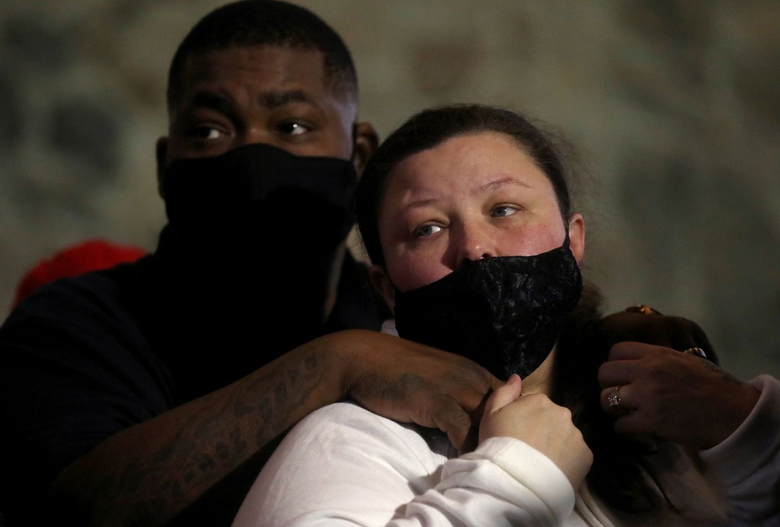 Aubrey and Katie Wright, the parents of Daunte Wright, take part in a news conference in Minneapolis, Minnesota, on April 15, 2021.