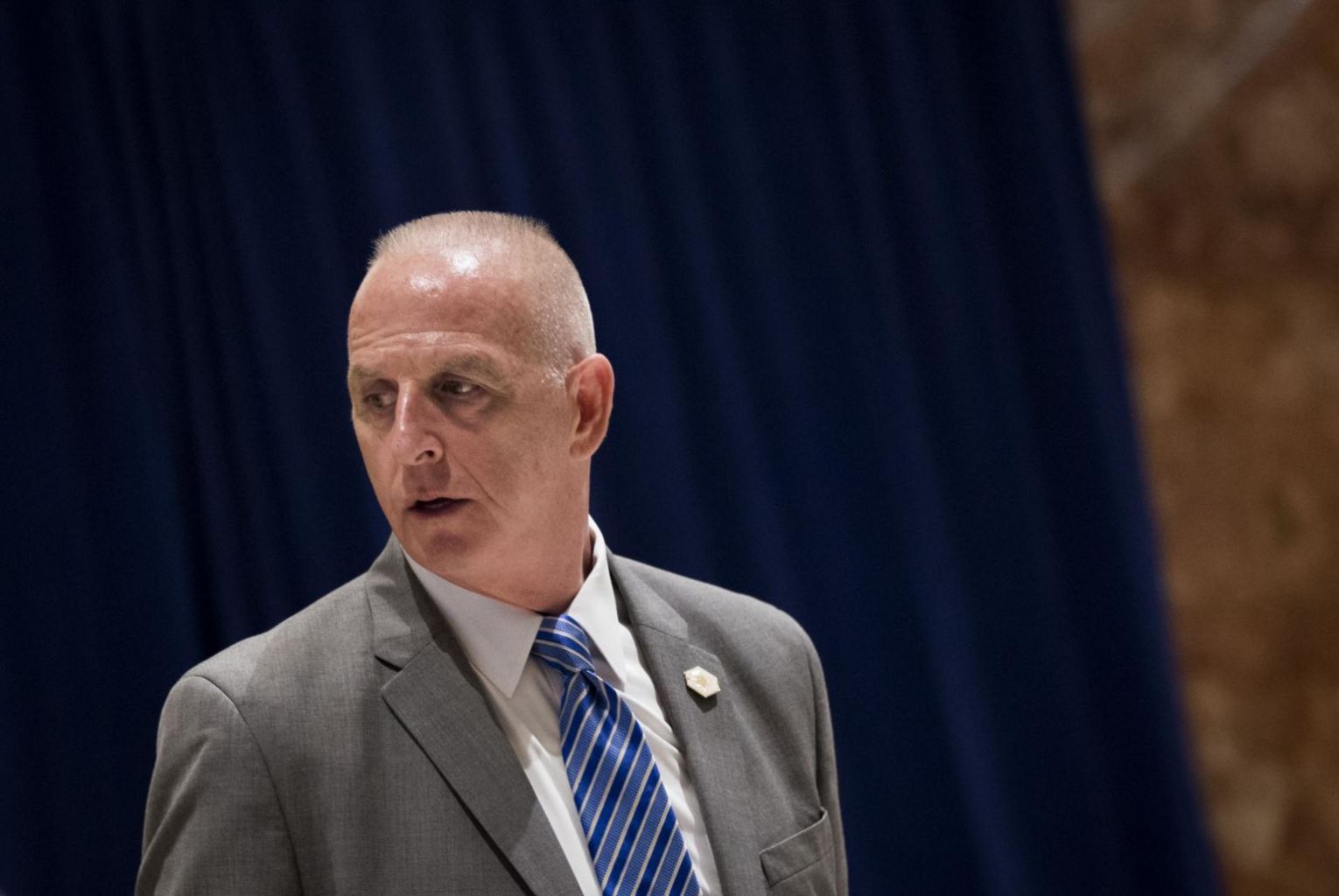 Keith Schiller, director of Oval Office operations, walks through the lobby at Trump Tower.