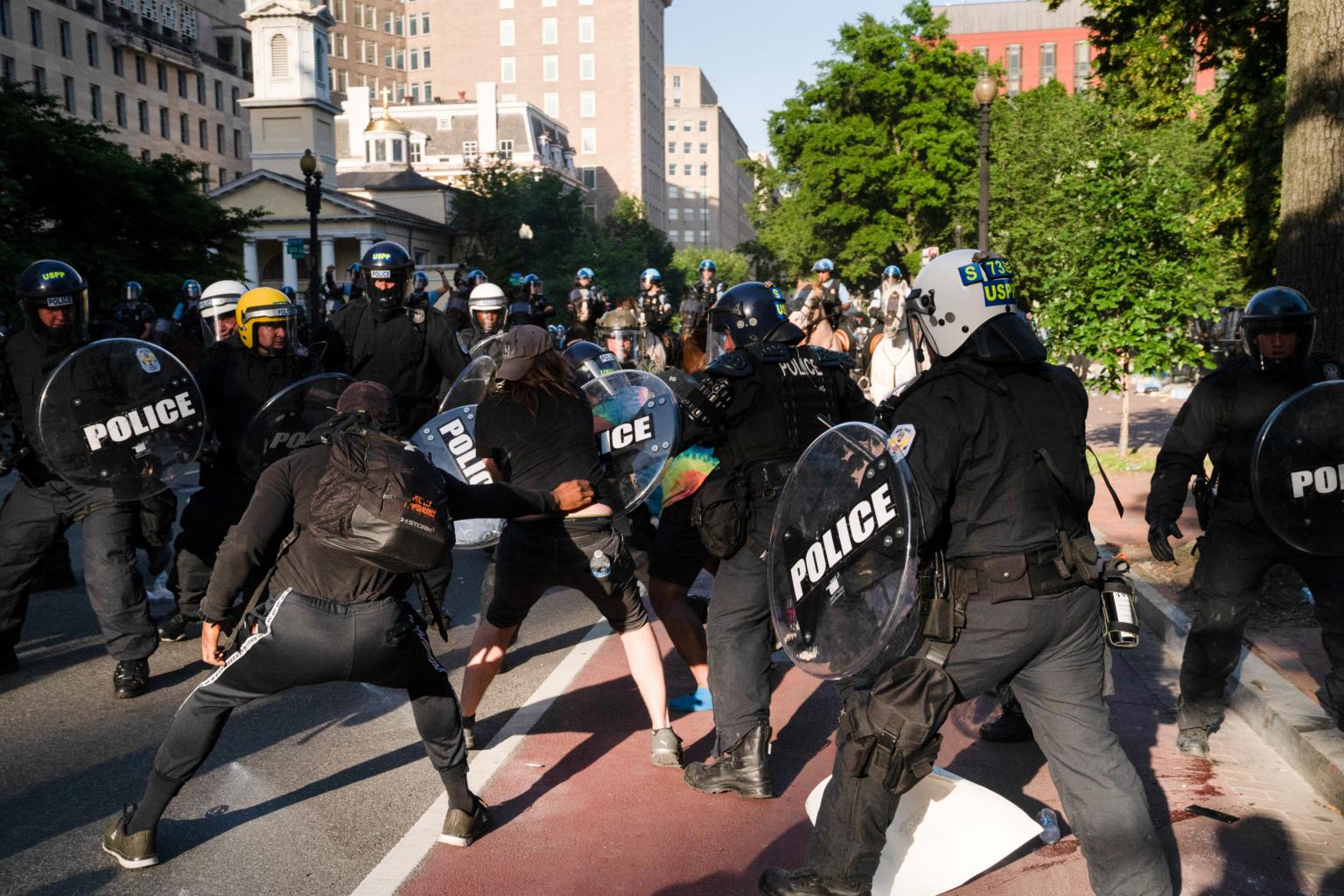 Riot police rush protestors in Washington, US, on June 1, 2020.