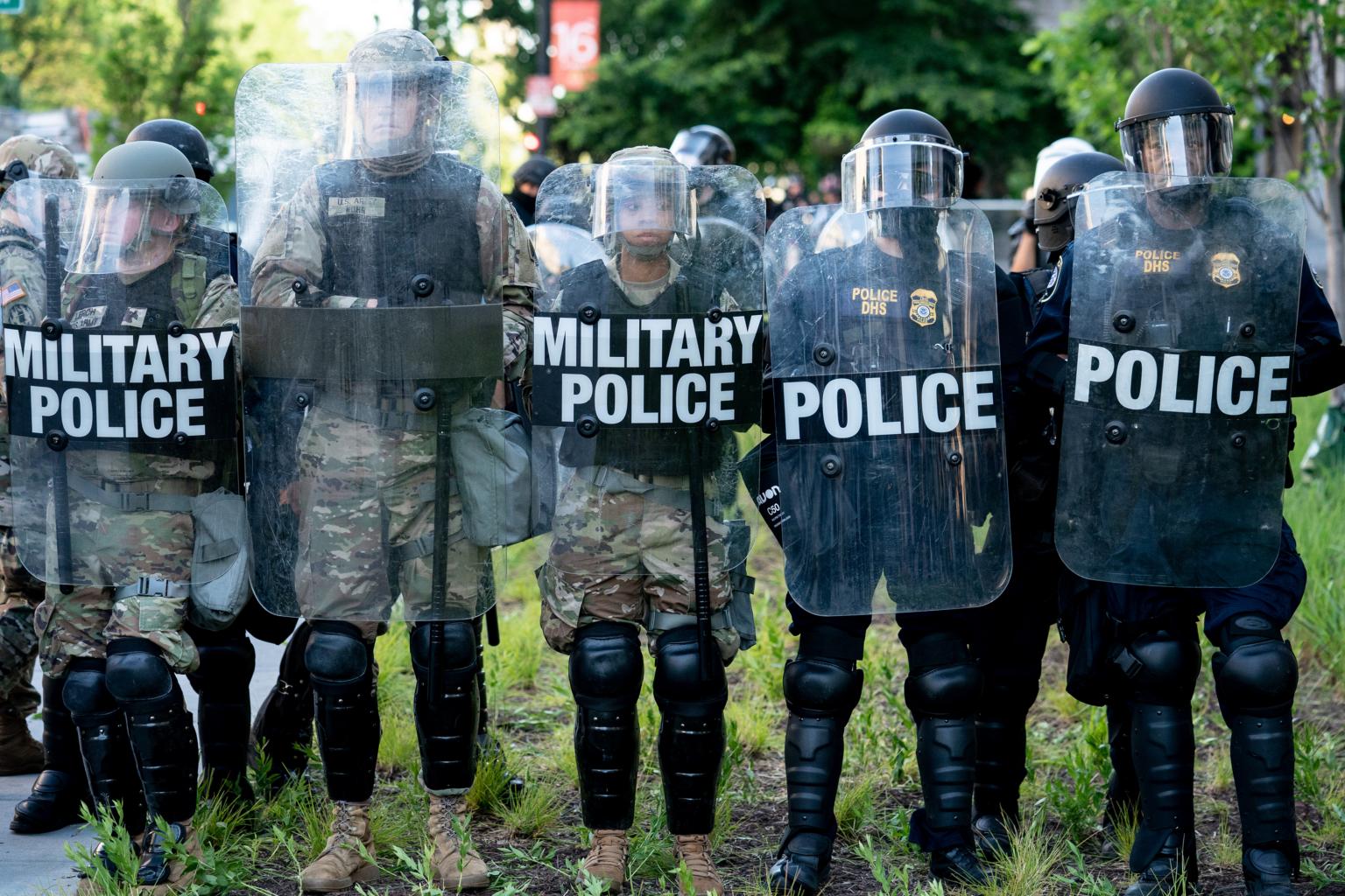Around 10pm, the military stepped up its attempts to suppress the protesters. A crowd making its way through the Chinatown area of Washington had gone relatively unbothered by law enforcement, having snaked across town, blocking roads and chanting "We can't Breathe," "George Floyd" and "Hands up, don't shoot." The group, for the most part, was peaceful.