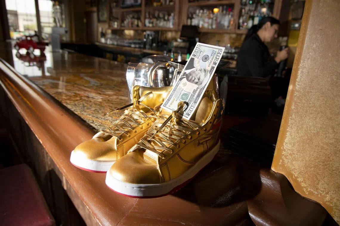The restaurateur proudly showed off a pair of gold-coloured sneakers bearing a Trump logo – a gift from the former president’s visit.