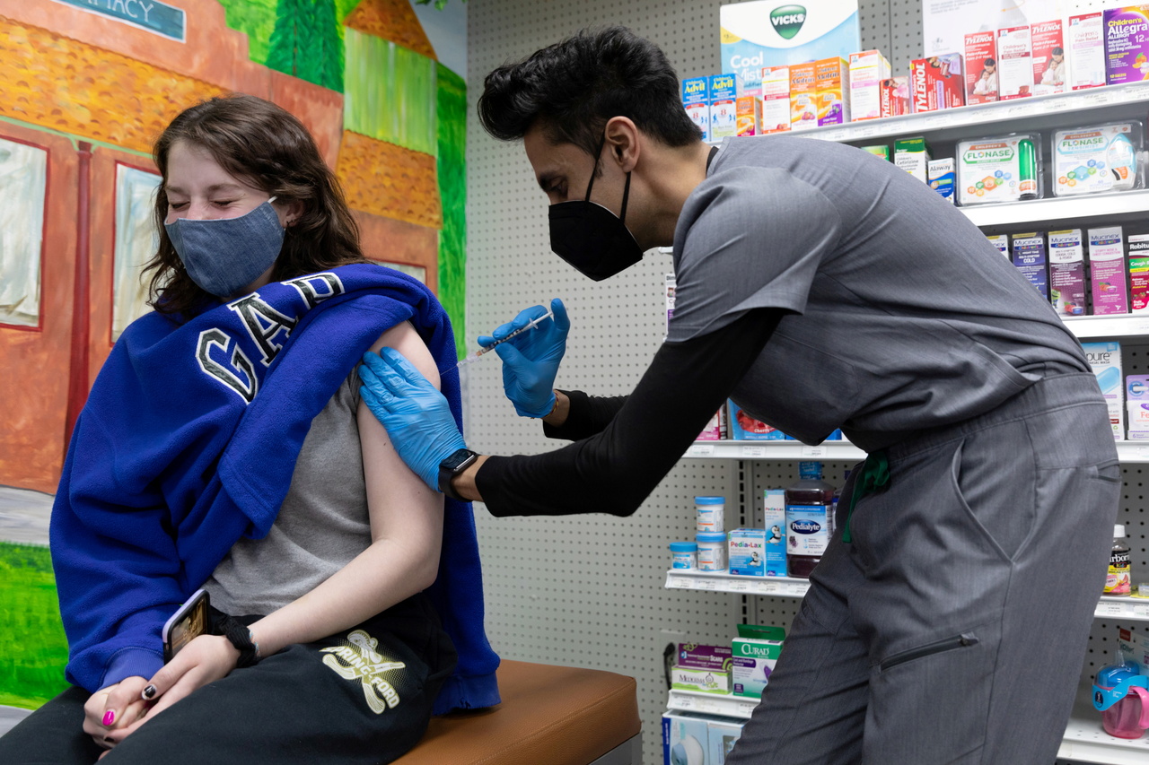 Julia Gadsby, 18, who has Lupus, receiving the Pfizer-BioNTech vaccine in Schwenksville, Pennsylvania, on March 3, 2021.