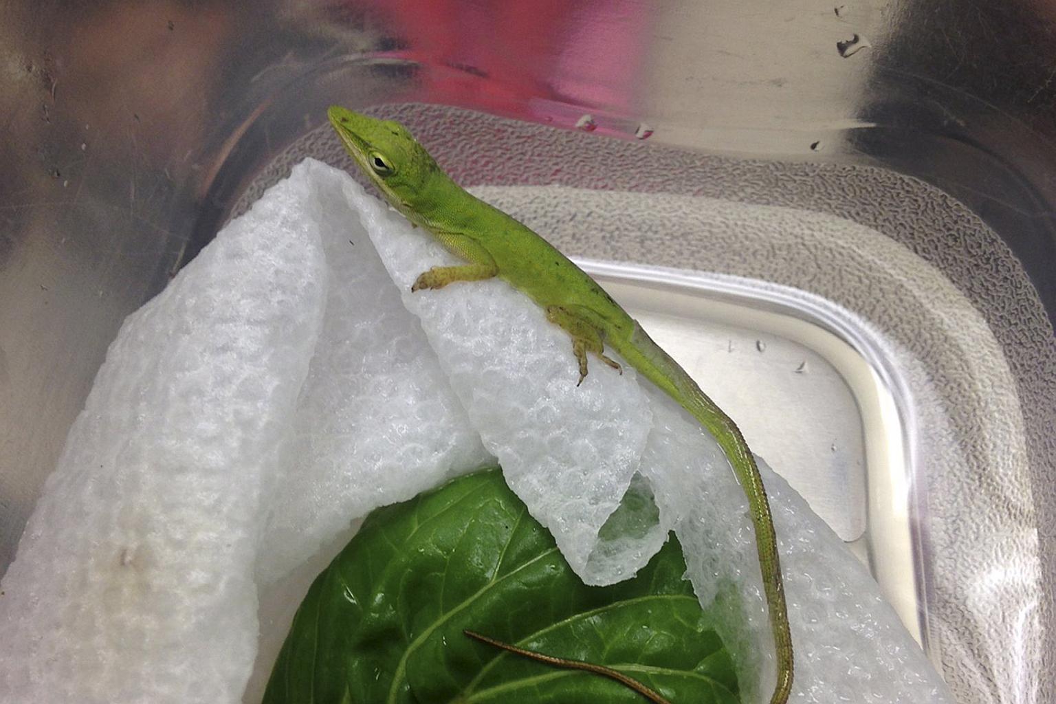 NEW YORK (REUTERS) - A tiny green lizard found by a New Jersey kindergarten student in a bundle of chilled salad greens at home has wriggled its way into the hearts of an entire elementary school class, which has adopted it as a mascot.