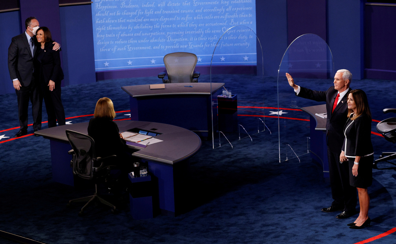 Ms Harris, fulfilling the running mate's traditional attack role, went after Mr Trump's record on healthcare and the economy to climate change and foreign policy, while Mr Pence defended the Republican administration's nearly four-year-old record.
