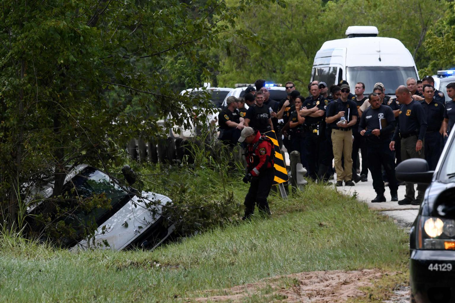 The white van became stuck in muddy water in a wooded area on Sunday morning, and started floating away in the current, according to accounts by the police and Mr Rick Saldivar, whose brother Sammy was driving it at the time.