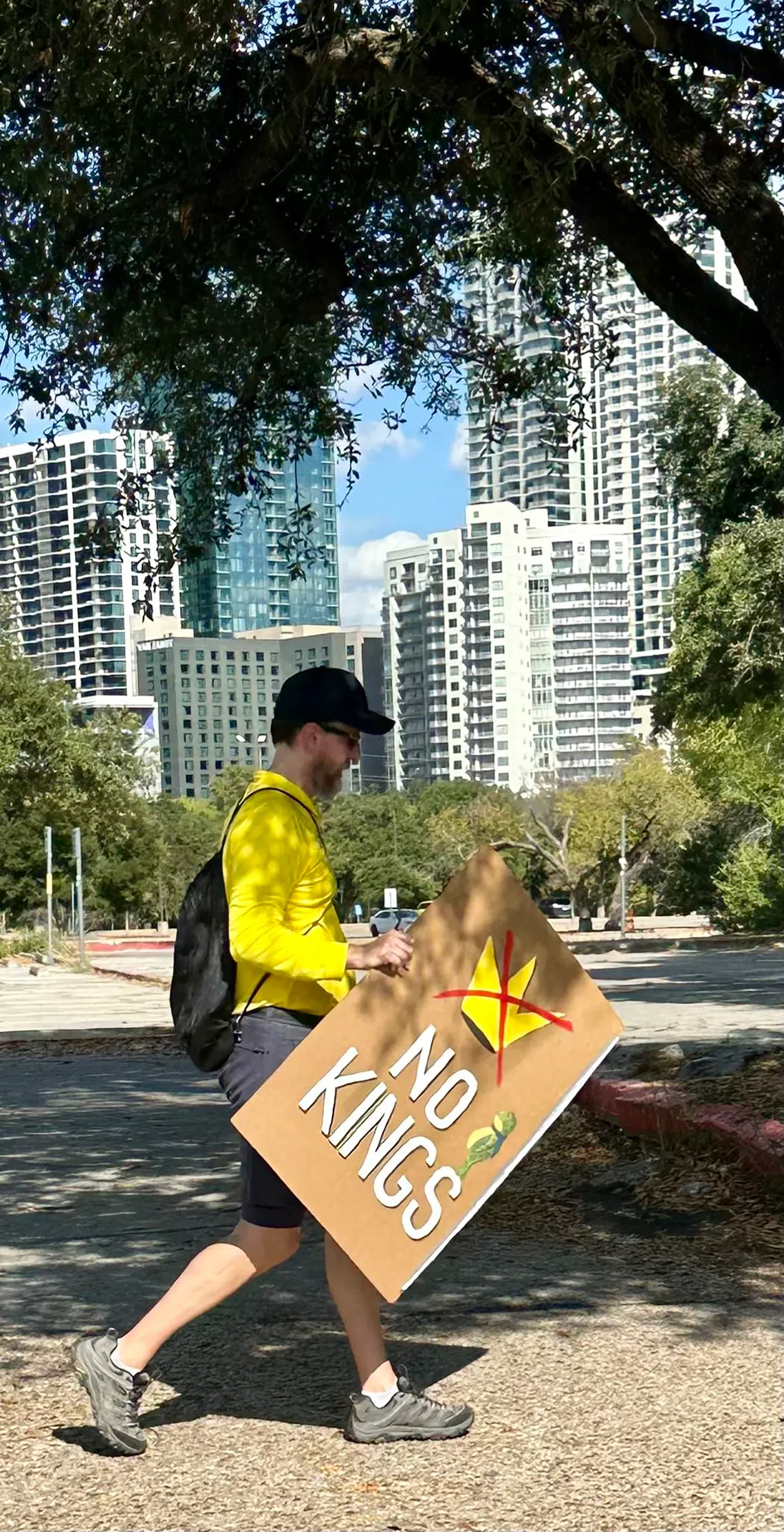 A protester taking part in a “No Kings” march in Austin, Texas, on Oct 18.