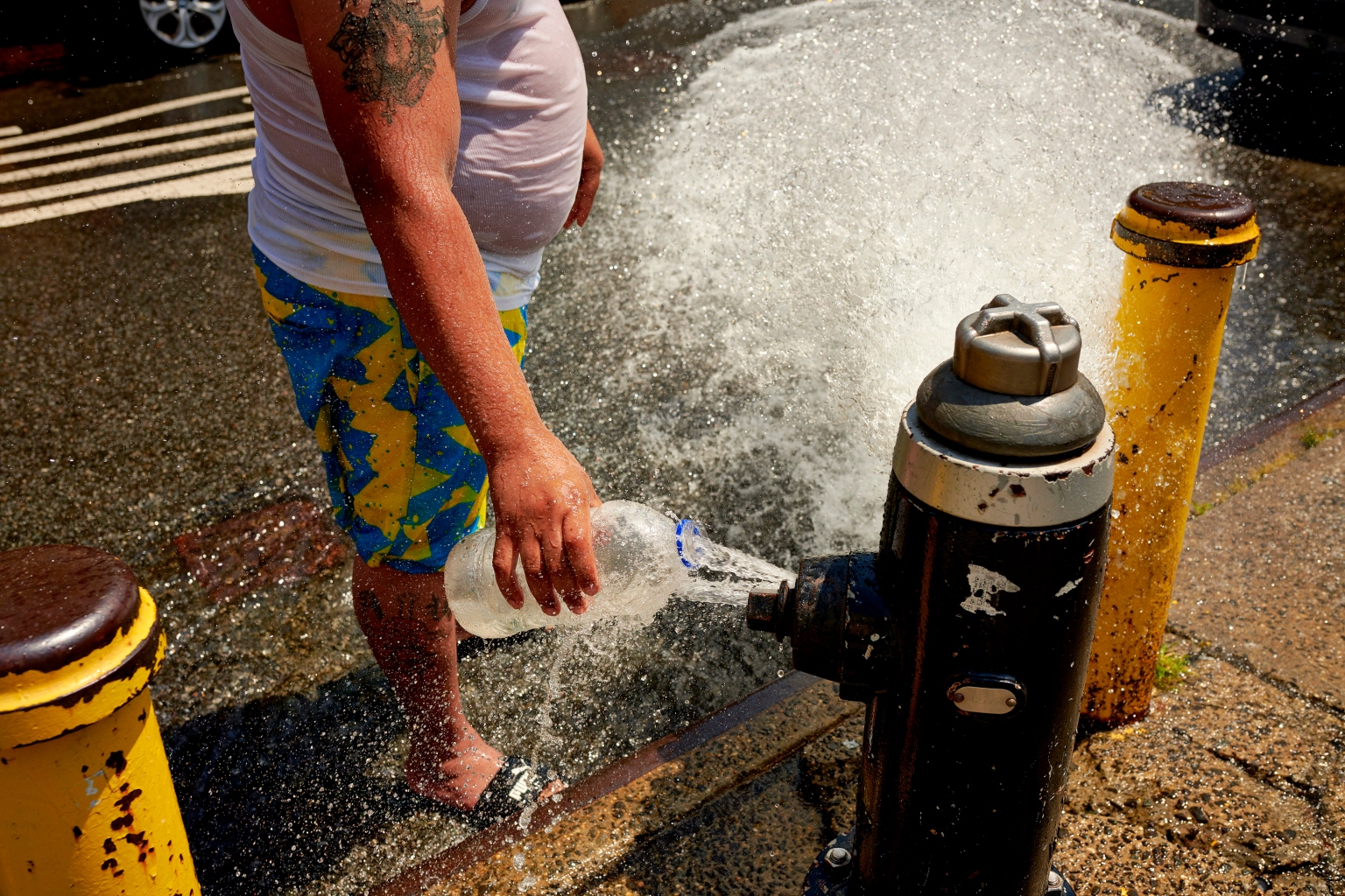 People use a fire hydrant to cool off in the Bronx, New York, on July 24, 2022.