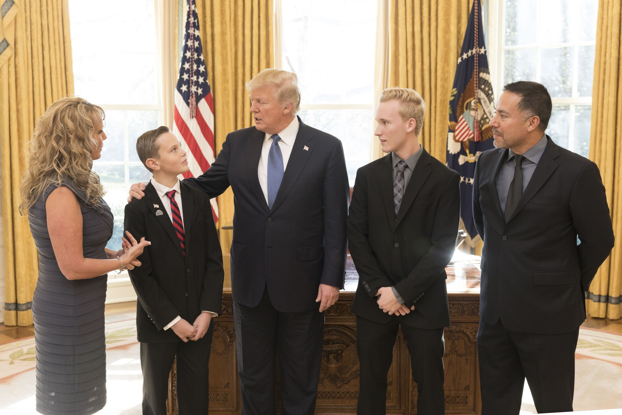 d. Officer Ryan Holets, of the Albuquerque Police Department, who, according to the White House, was twice shot at during his time as an officer. He and his wife adopted a child from parents who were addicted to opioids.