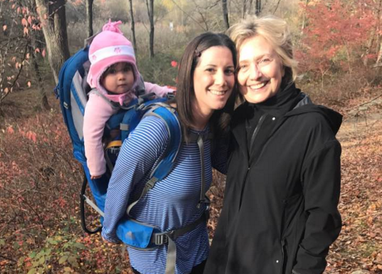 In an image posted on Ms Gerster's Facebook page, Mrs Clinton can be seen smiling with the White Plains resident, who was hiking with her daughter, 13-month-old Phoebe, and their dog, Piper.