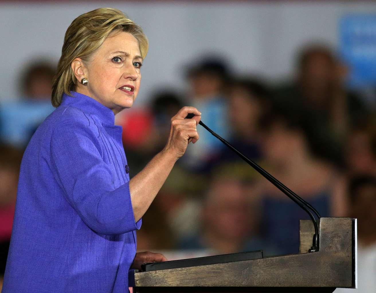 Hillary Clinton speaking at a campaign rally in Cincinnati, Ohio, on June 27, 2016.