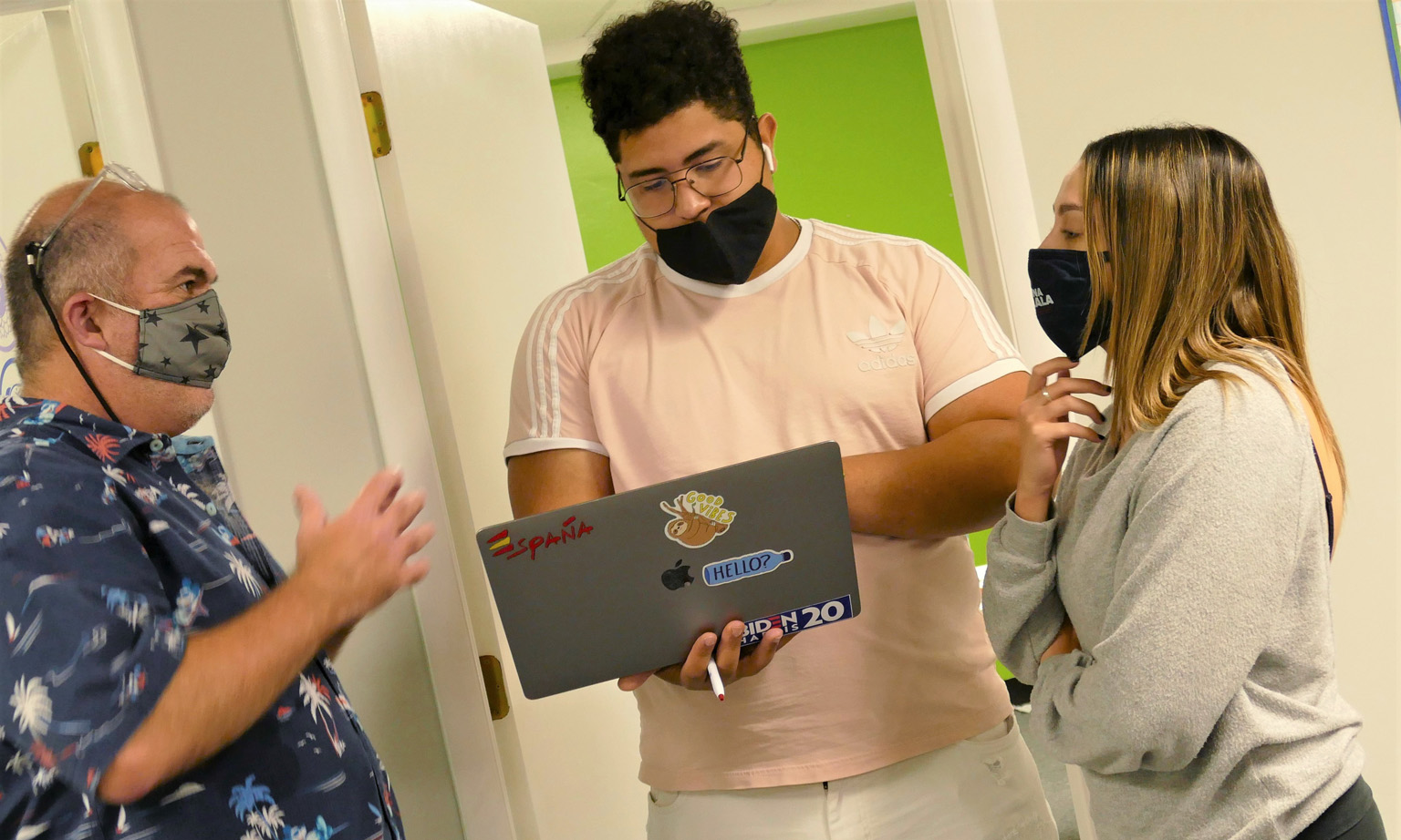 Political consultant Jeffrey Garcia (far left), who runs campaigns of several Democratic candidates, confers with volunteers in Florida.