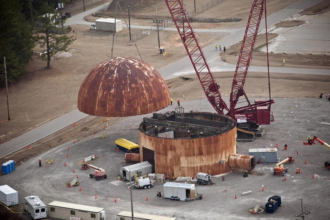 A 2011 photo shows workers decommissioning heavy water infrastructure at the Savannah River Site, near Aiken, South Carolina.
