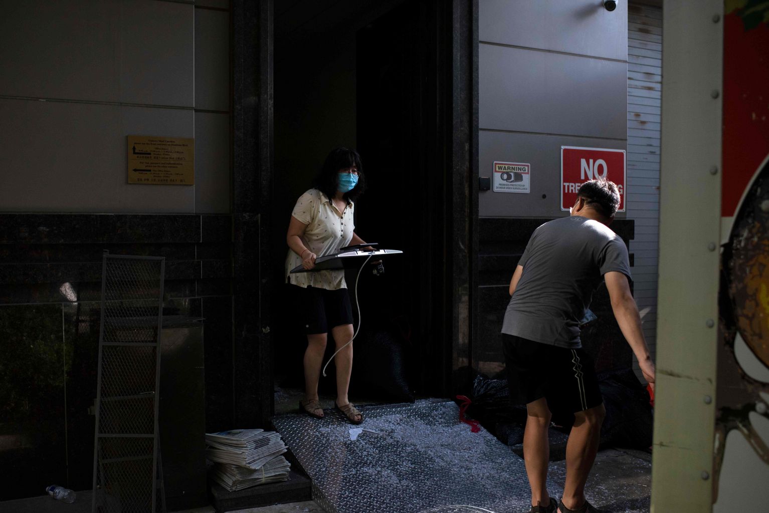 A woman moves equipment into a U-Haul truck at the Chinese consulate in Houston on July 24, 2020.