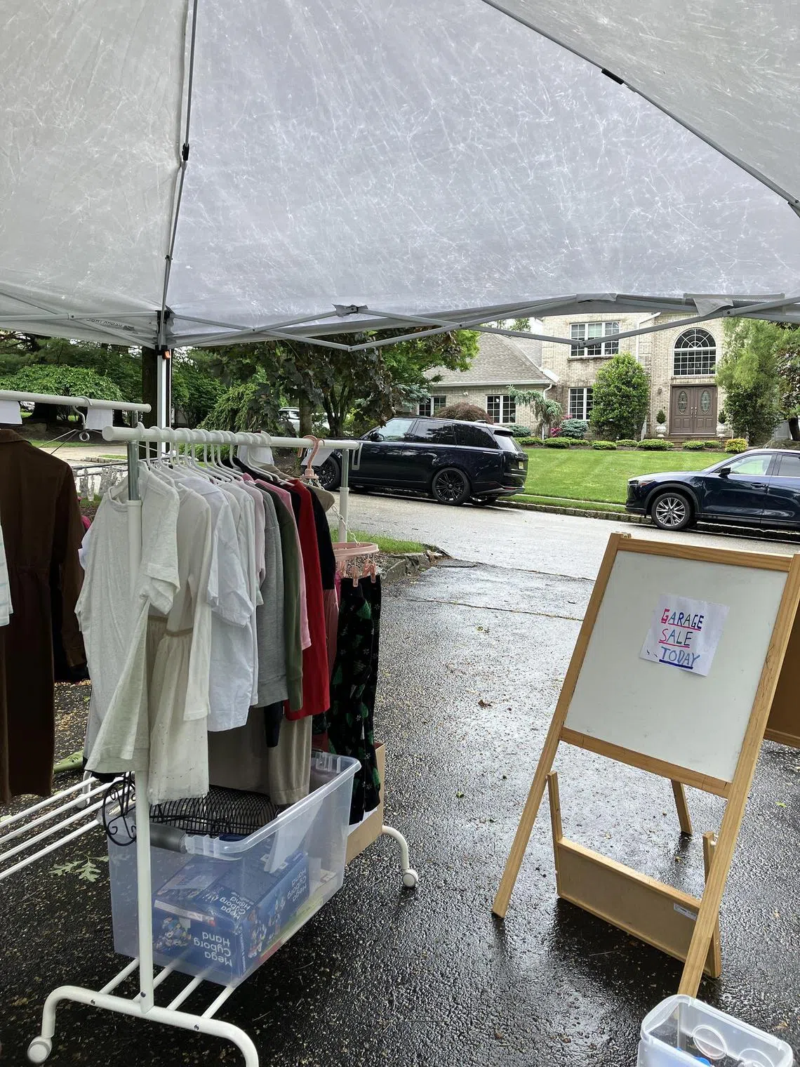 A friend’s garage sale: Nintendo and game consoles snapped up, while clothes remain.