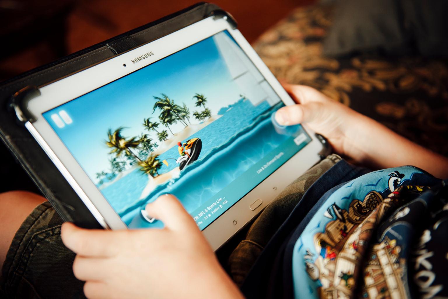 Kim Slingerland’s son, Shane, playing Fun Kid Racing, a game downloaded from the family section of the Google Play store.