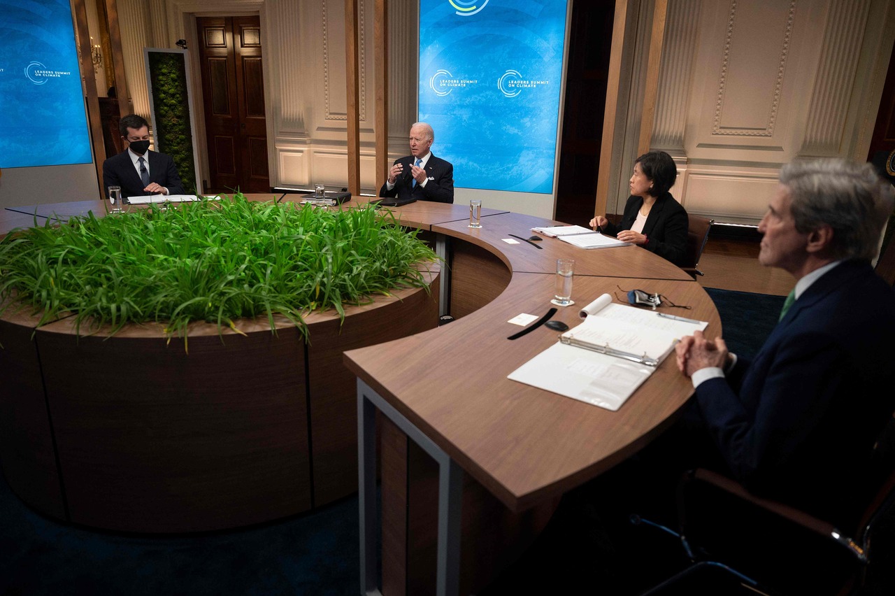 President Joe Biden participates in the virtual Leaders Summit from the White House in Washington, DC, on April 23, 2021.