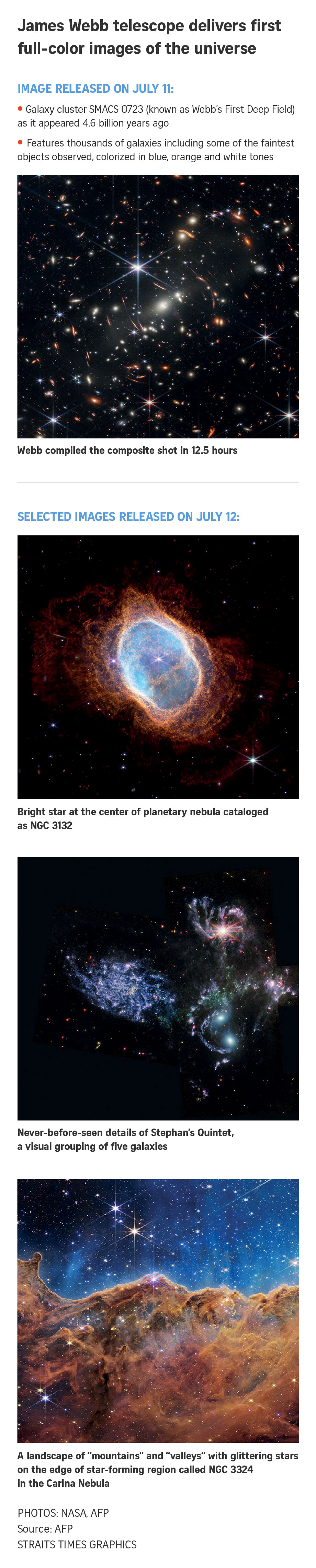 NEW YORK (NYTIMES) - The Webb space telescope was built with some of the most advanced scientific instruments sent beyond Earth's orbit. Astronomers believe the spacecraft will help them understand more about black holes, how stars are born and die and what lies within the atmospheres of planets orbiting other stars; perhaps, it will even give us a glimpse of an era close to the Big Bang.