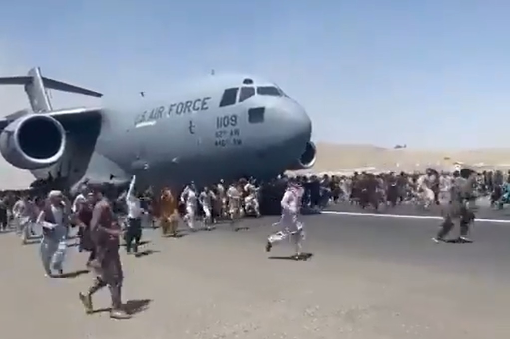 Images circulated on social media earlier this week of Afghans desperate to leave Kabul rushing towards a C-17 and clinging to its side.