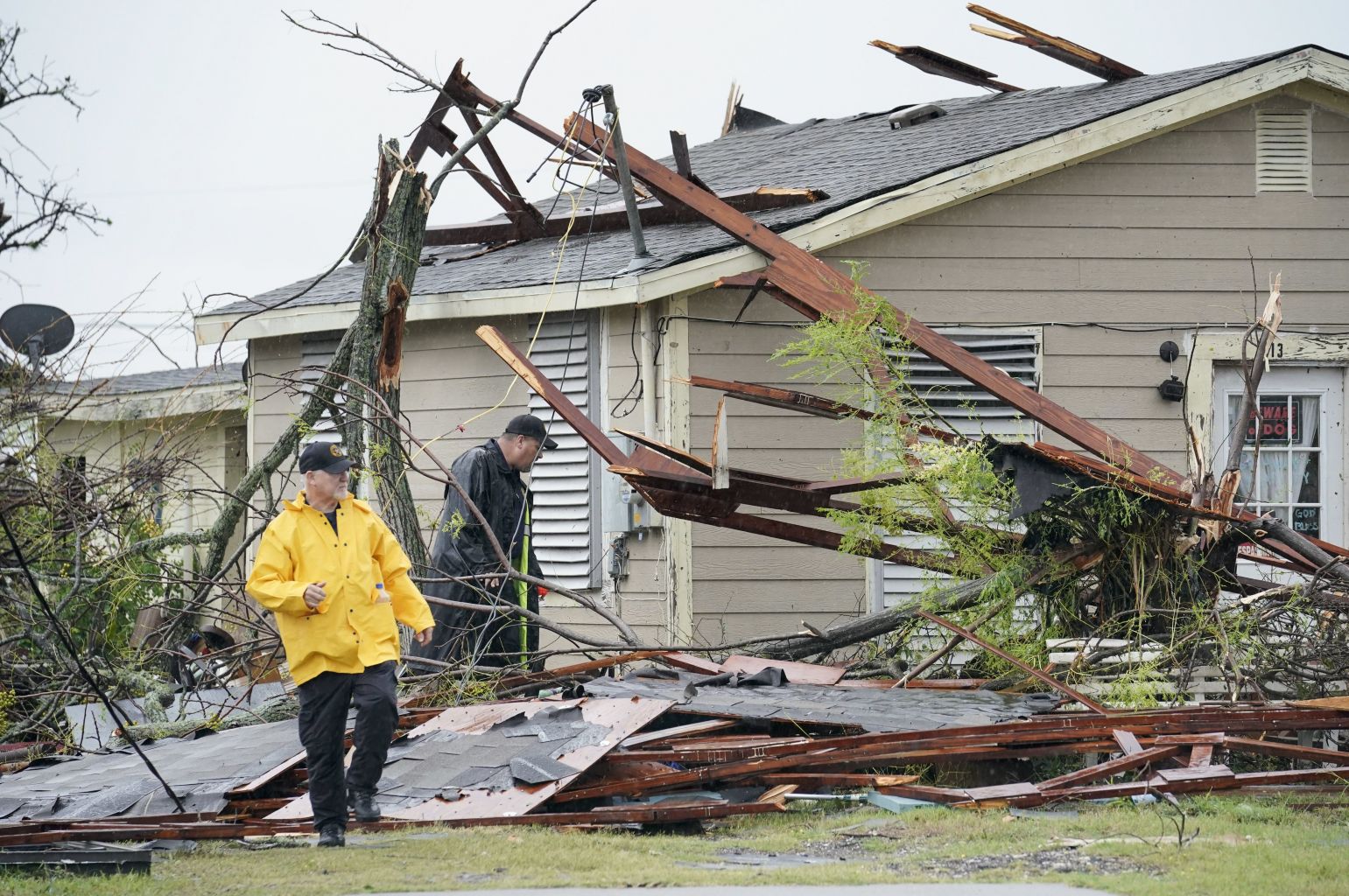 Law enforcement officials search for survivors in the aftermath of Hurricane Harvey in Rockport, Texas.
