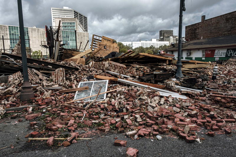 Bricks from a collapsed historical building in New Orleans, Louisiana, on Aug 30, 2021.