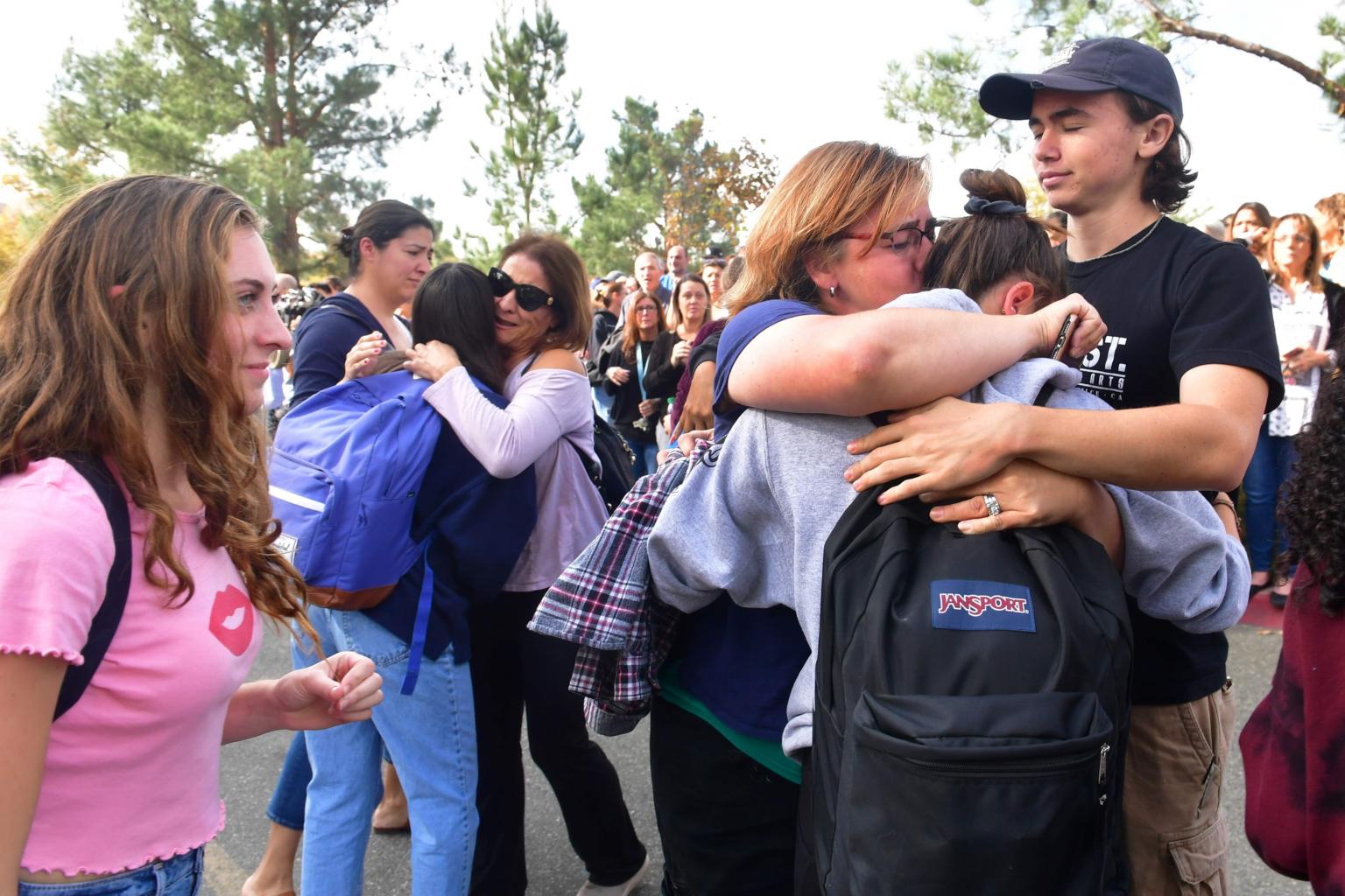 Grieving students from Saugus High School reunite with their parents at Central Park in Santa Clarita, California, on Nov 14, 2019.