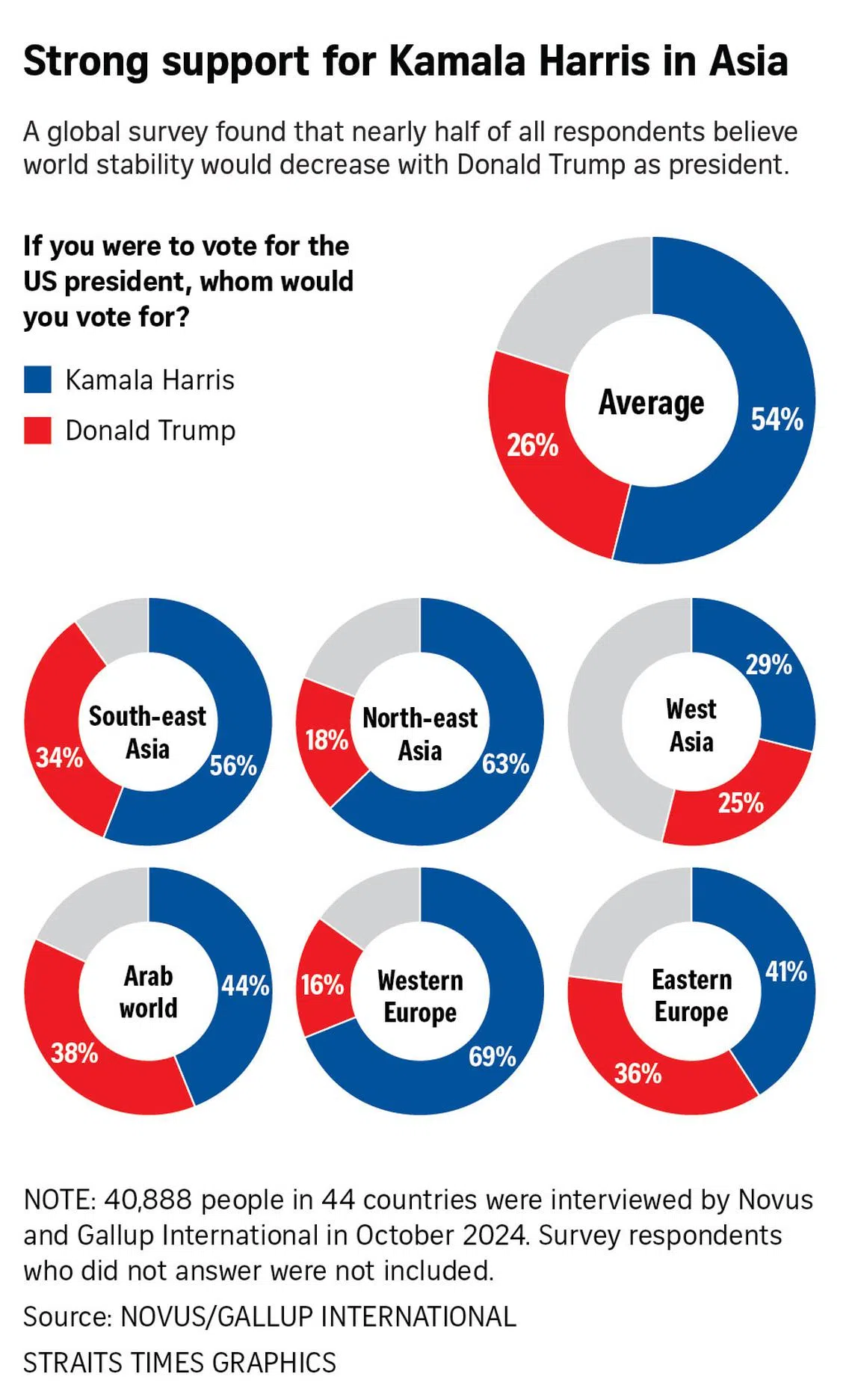 Expectations are low, no matter who wins the deadlocked Nov 5 election, but it would seem that Asia cautiously views Vice-President Kamala Harris as the better option.