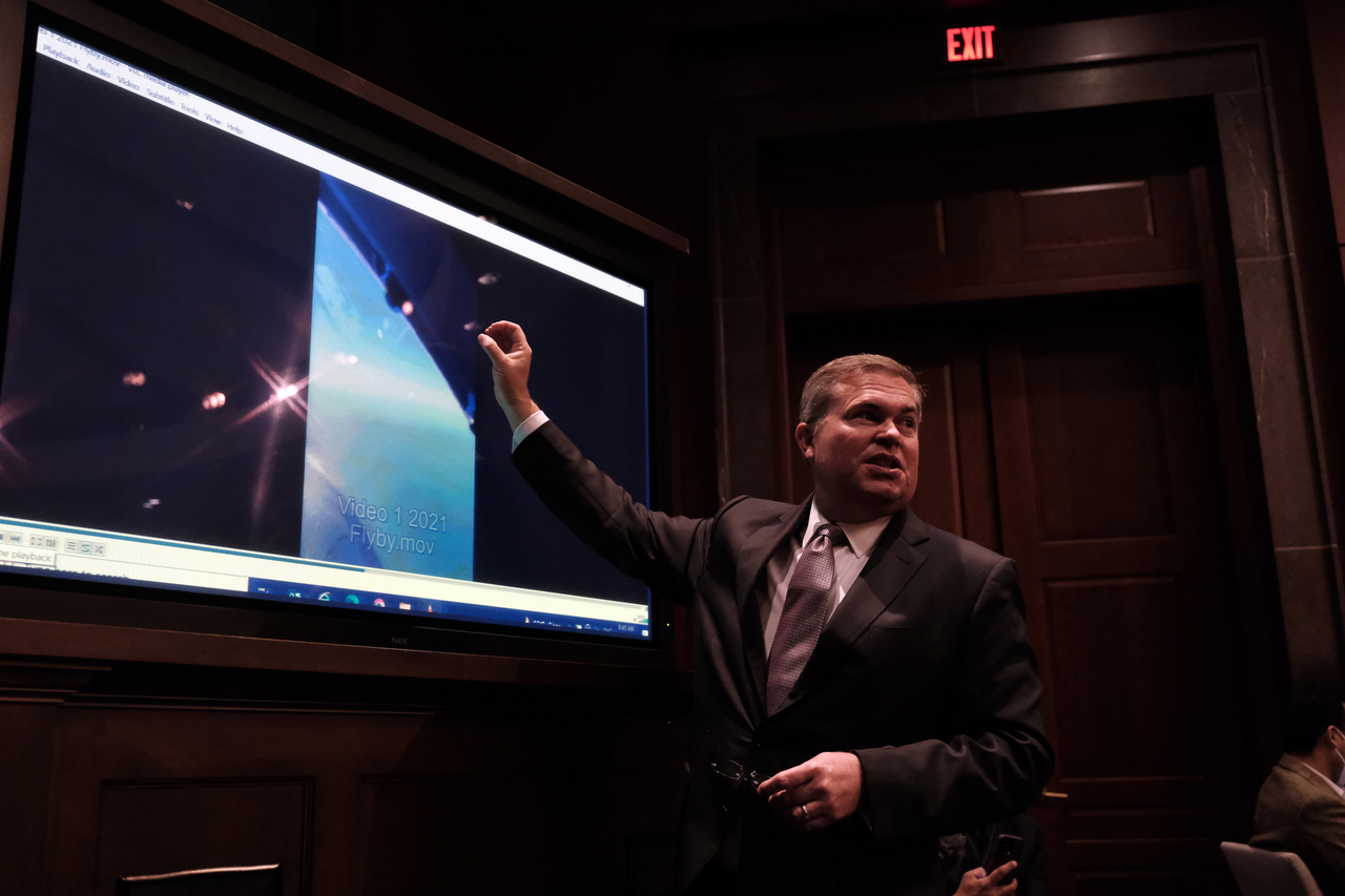 Deputy director of naval intelligence Scott Bray speaking about unexplained aerial phenomena at a hearing in Washington.