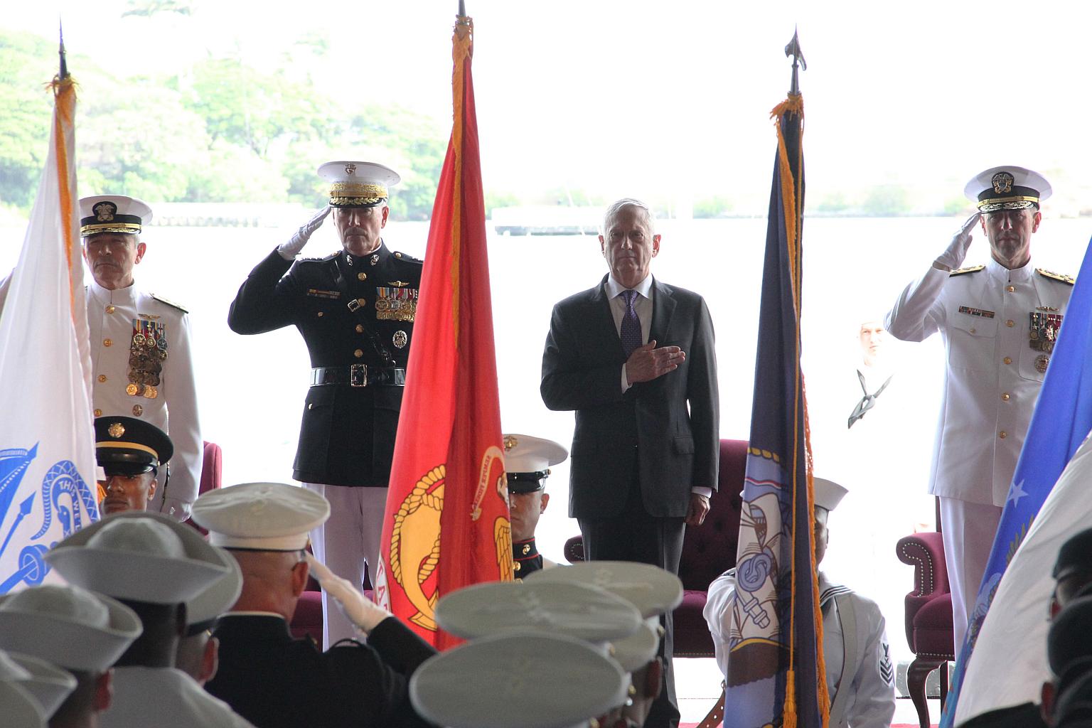 He was speaking during a change of command ceremony. Admiral Philip Davidson was assuming leadership of the command from Admiral Harry Harris, who is President Donald Trump's nominee to be ambassador to South Korea.