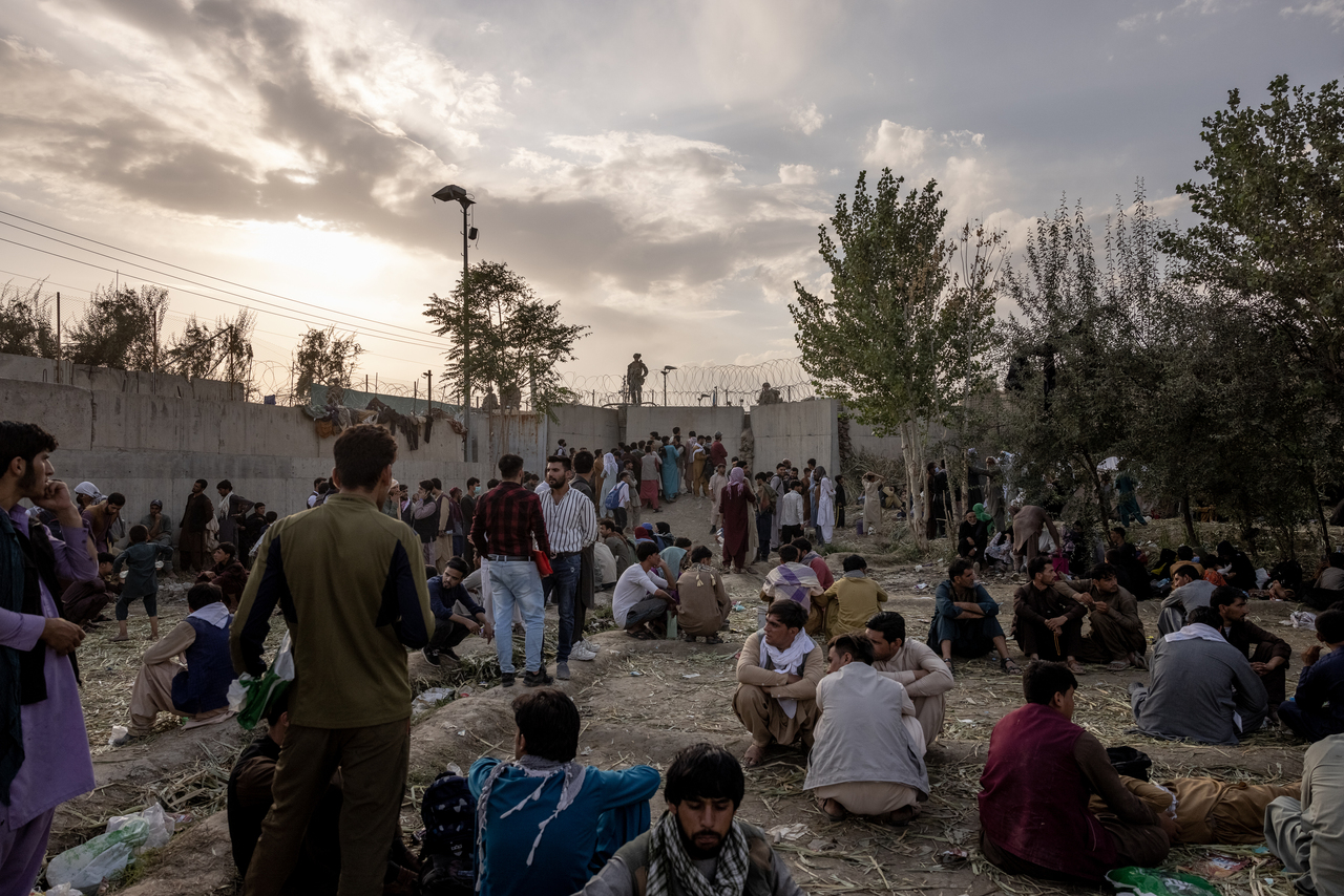 Crowds gathered daily outside of the international airport in Kabul after the Taliban took control of the government.
