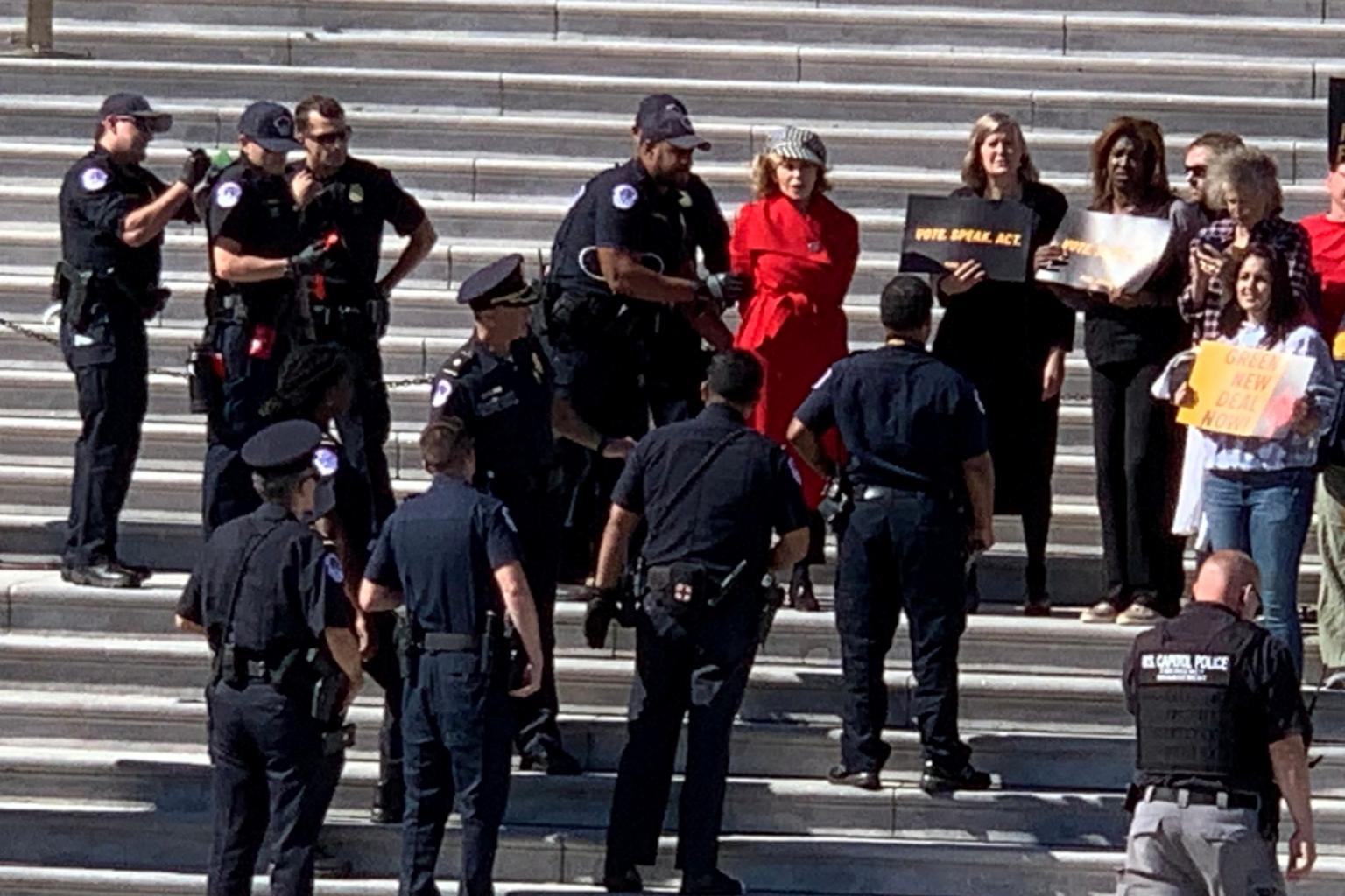 The 81-year-old film star, longtime activist and exercise guru was taken into custody with several others after 10 minutes of protesting on the Capitol steps, video posted on Fonda's Facebook page showed.